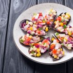 - Mezclar el tomate, cebolla, choclo, aceite, sal y jugo de limón.